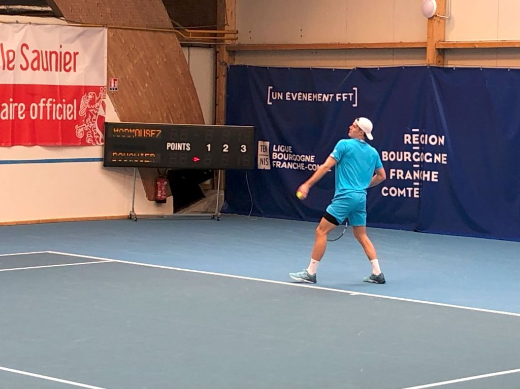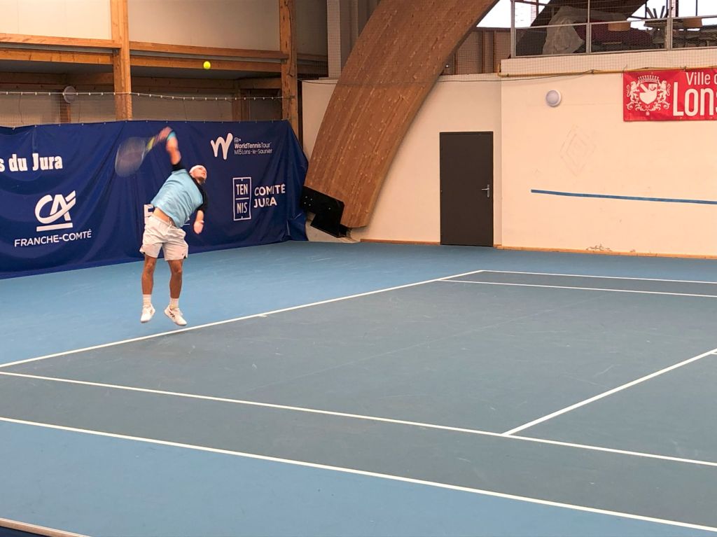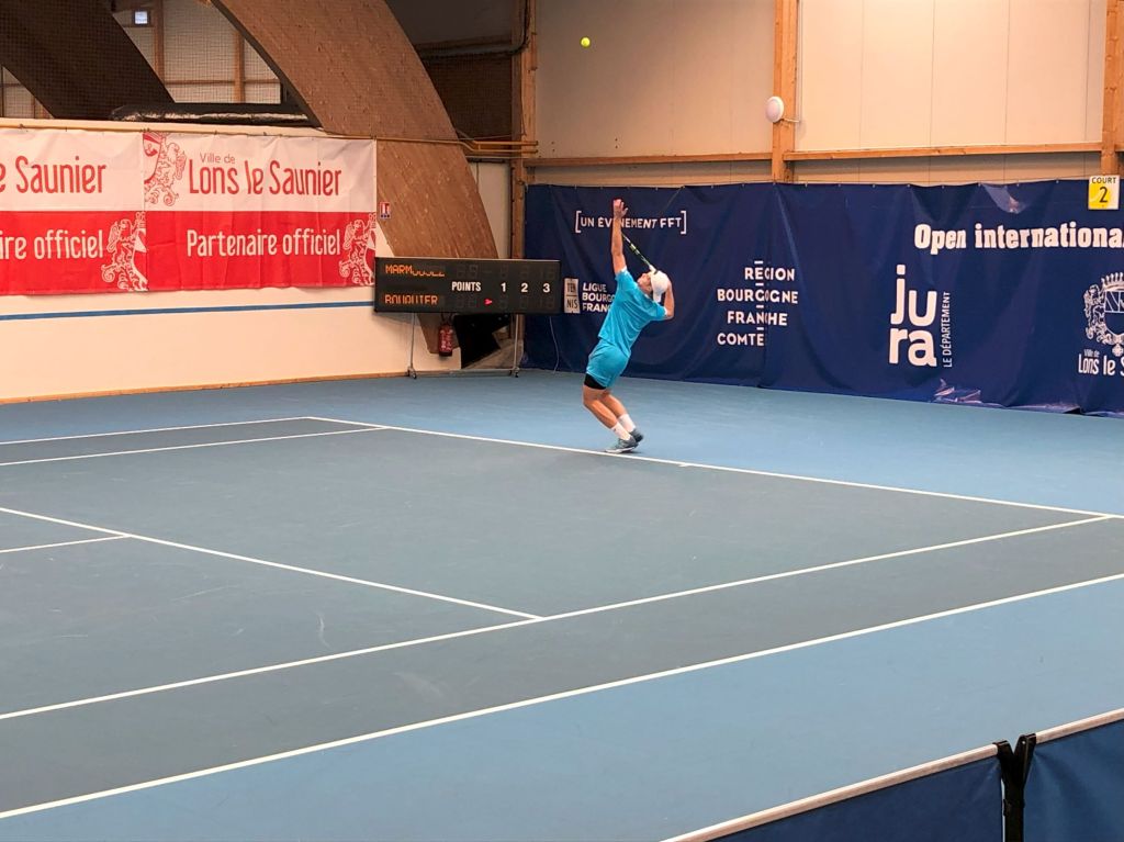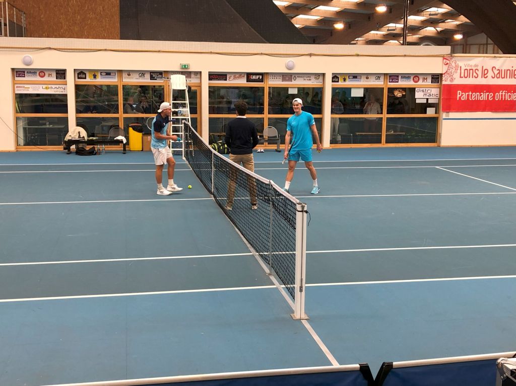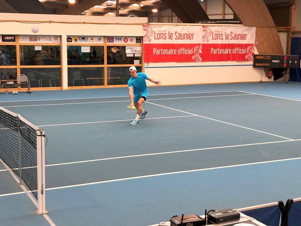 Image de la rencontre du deuxième tour de l’ITF 15000 Lons-le-Saunier entre Arthur Bouquier et Lilian Marmousez le jeudi 4 avril. Victoire d’Arthur 7/5 6/3 6/2.