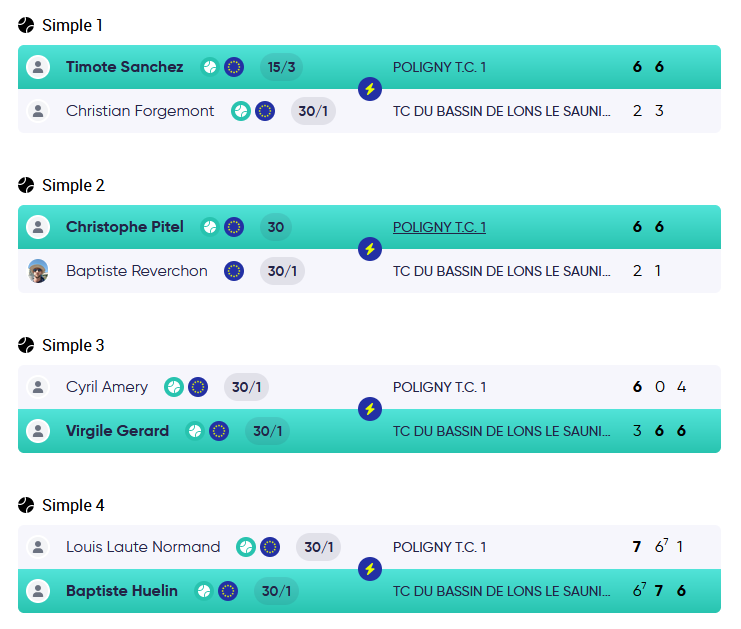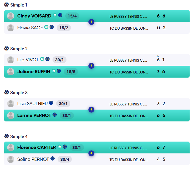 - LE RUSSEY TENNIS CLUB 1 / TCBL 1 : 3/3 (BFC 3)