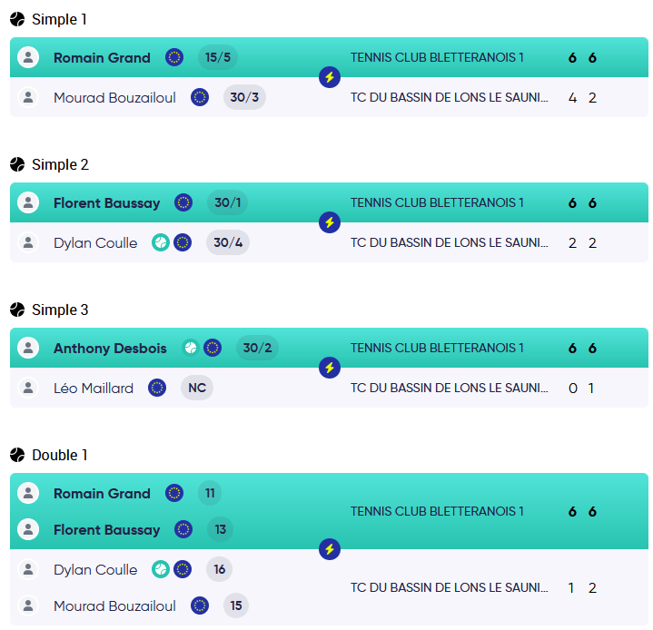 - TENNIS CLUB BLETTERANOIS 1 / TCBL 4 : 4/0 (D2)