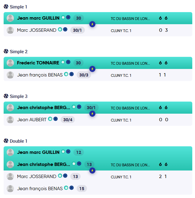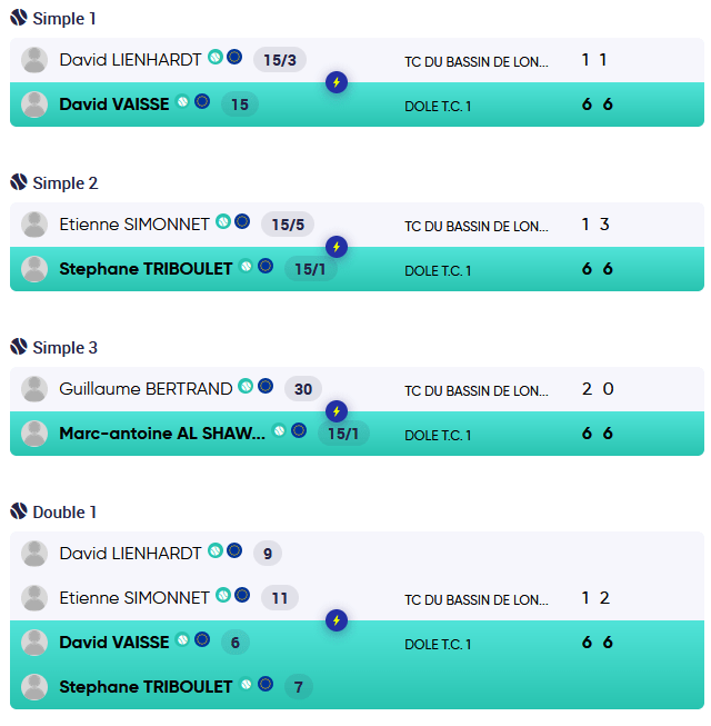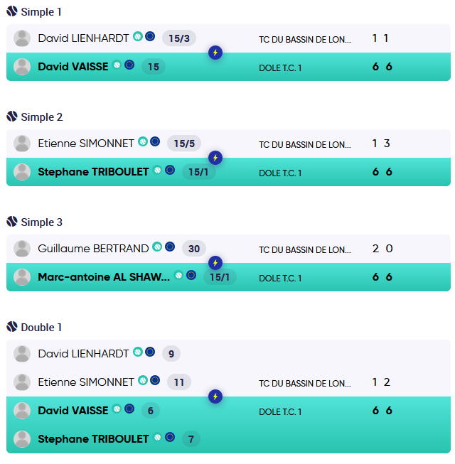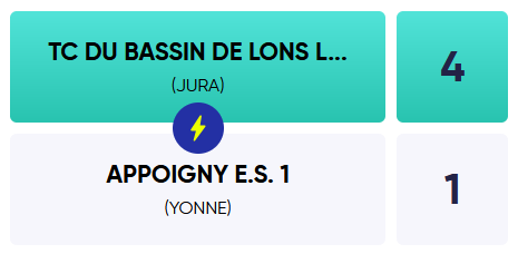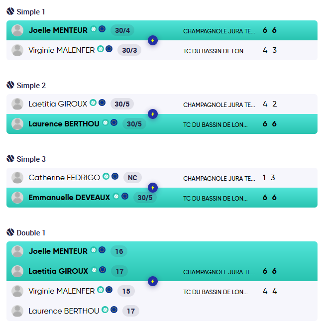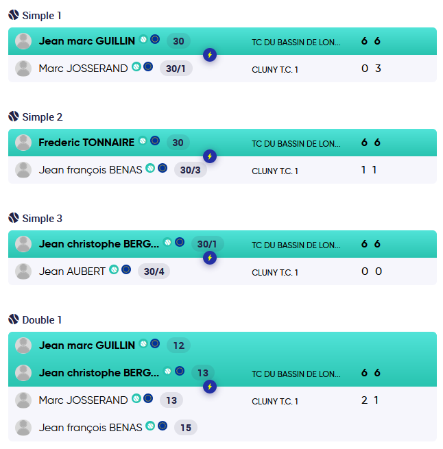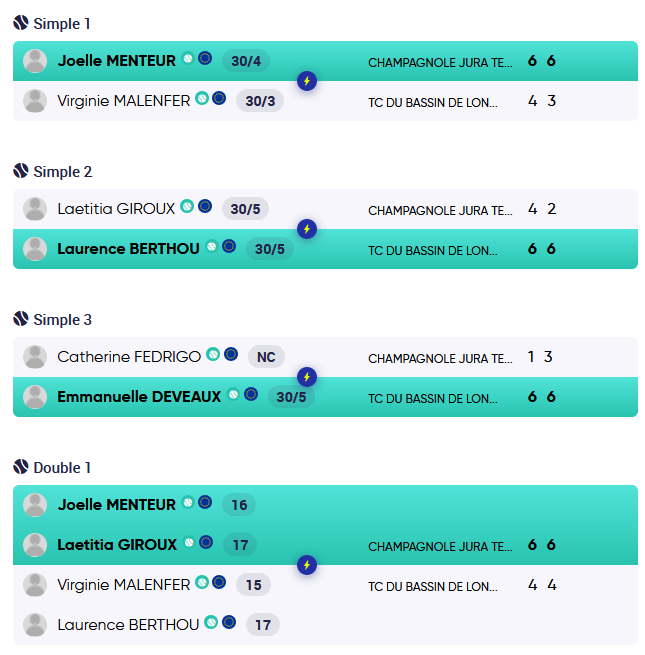 Publié le 9 octobre 202410 octobre 2024 in Compétition Championnat par équipes senior plus – J1 Résultats de la première journée des interclubs senior + le 06/10/24 et le 10/10 : Hommes + 35 : Dole TC / TCBL : 5/0 + 55 : TCBL / CLUNY TC : 5/0 + 65 : TCBL / APPOIGNY : 4/1 Femmes + 35 : CHAMPAGNOLE JURA TENNIS PADEL / TCBL : 3/2 Partager : Cliquer pour partager sur X(ouvre dans une nouvelle fenêtre) X Cliquez pour partager sur Facebook(ouvre dans une nouvelle fenêtre) Facebook J’aime chargement…