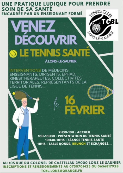Le Tennis Club du Bassin Lons le saunier ( TCBL ) organise des séances de Tennis Santé « Découverte » GRATUITES !