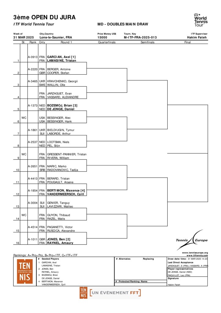 Publié le 31 mars 2025 in Open du Jura Open du Jura – Tableau des doubles Voici le tableau du tournoi de doubles : Partager : Cliquer pour partager sur X(ouvre dans une nouvelle fenêtre) X Cliquez pour partager sur Facebook(ouvre dans une nouvelle fenêtre) Facebook J’aime chargement…