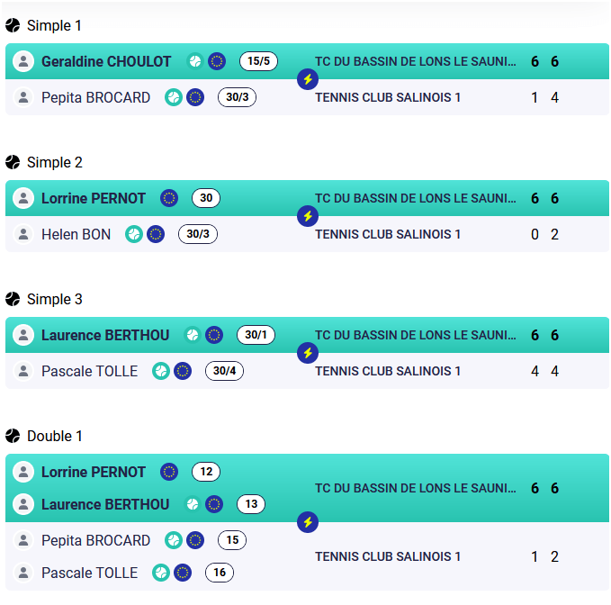 - +35 : TCBL 1 / TENNIS CLUB SALINOIS 1 : 5/0