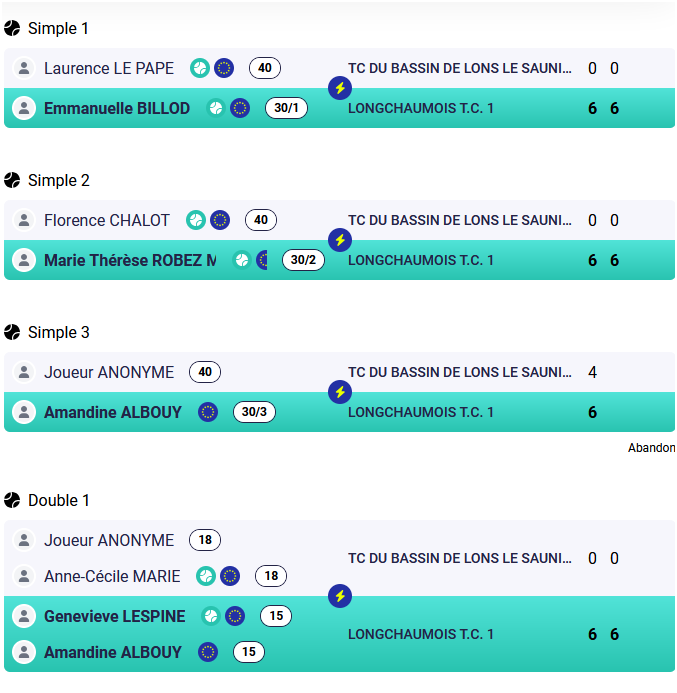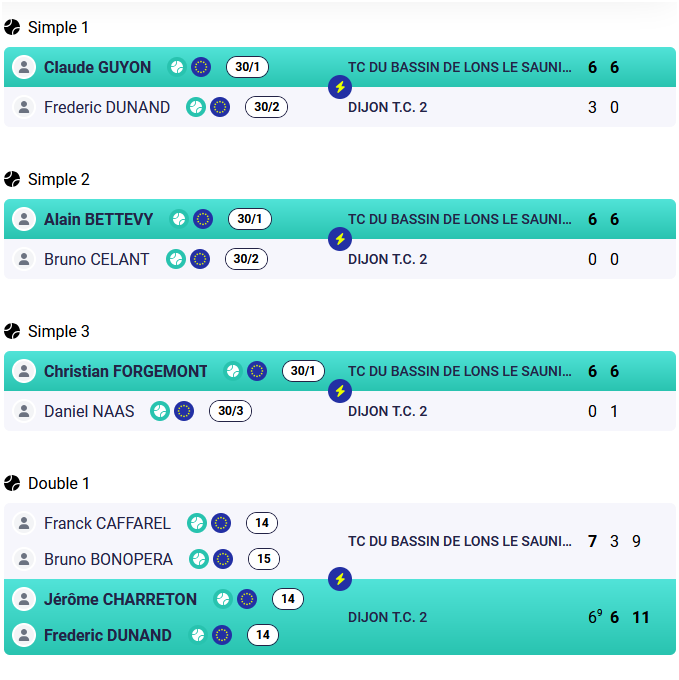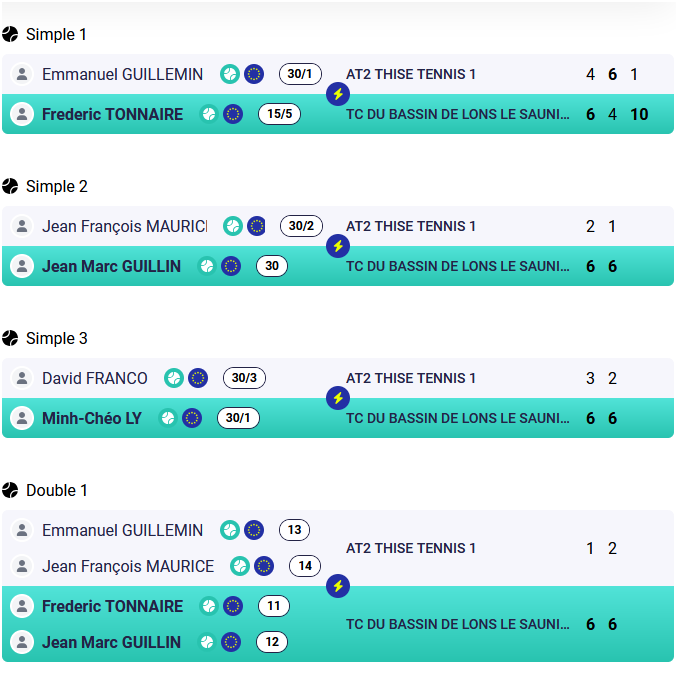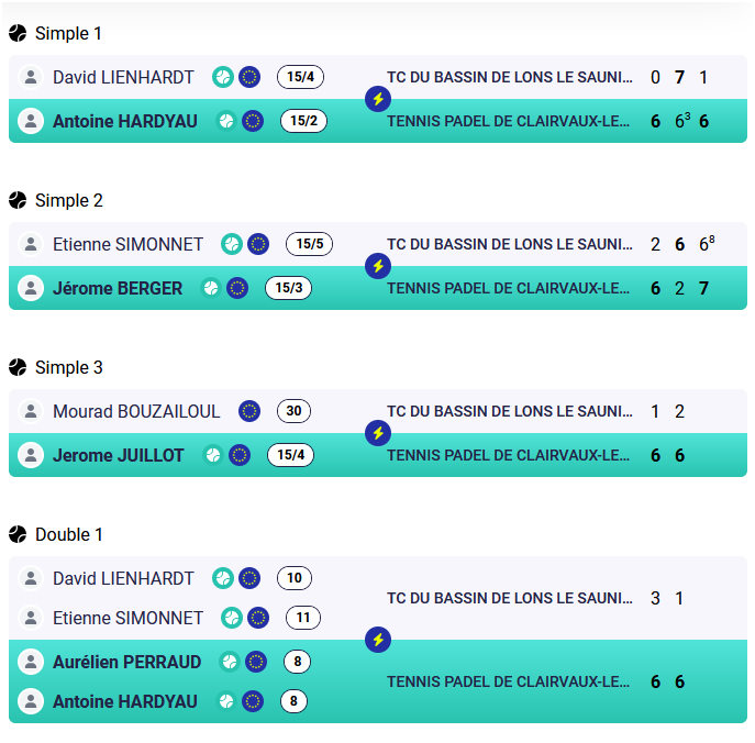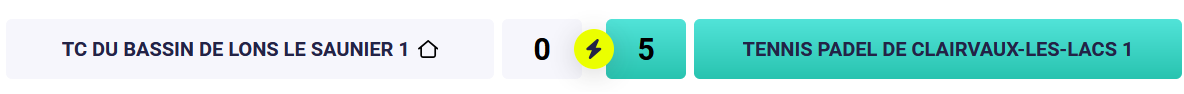 - +35 : TCBL 1 / TENNIS PADEL DE CLAIRVAUX-LES-LACS 1 : 0/5